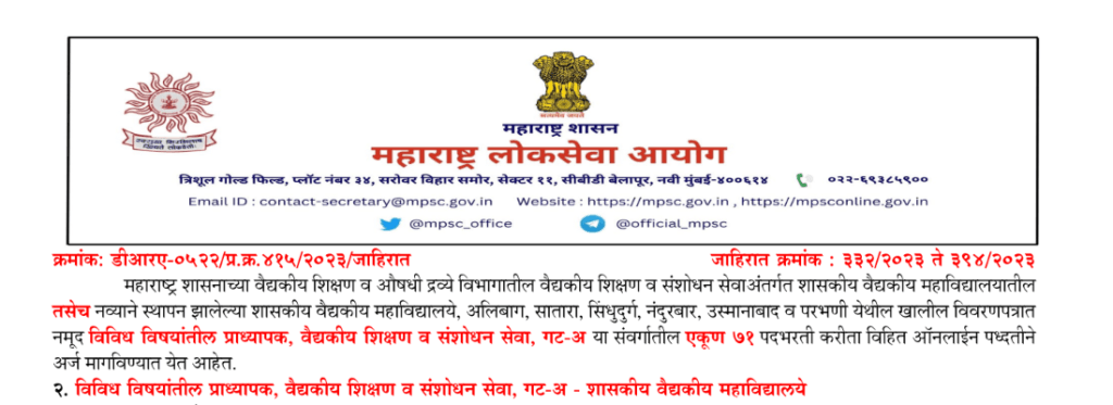 - Applicants should submit online applications through the official website: https://mpsc.gov.in/